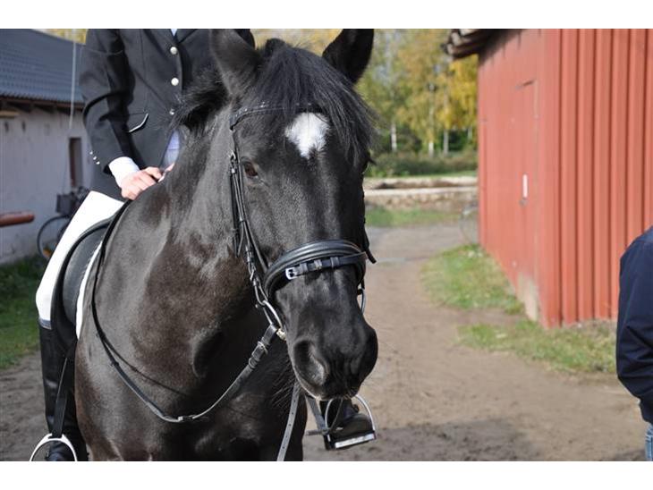 Hun er en dejlig sort hoppe med en hvis stjerne i hovedet.