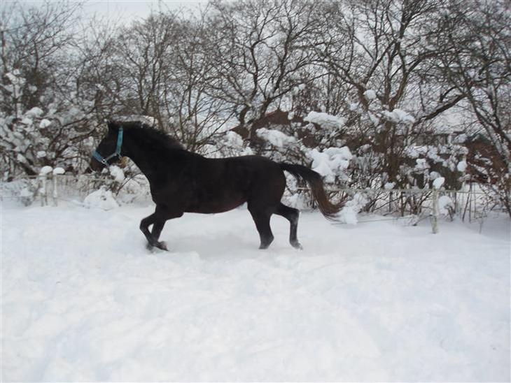 Det går rigtig godt med ham, lige nu står han bare og vokser og er en rigtig fræk unghest. Men så snart sneen er væk skal vi igang igen, så det håber jeg kommer til at gå smertefrit. Så han kan få brugt noget af alt sin energi.