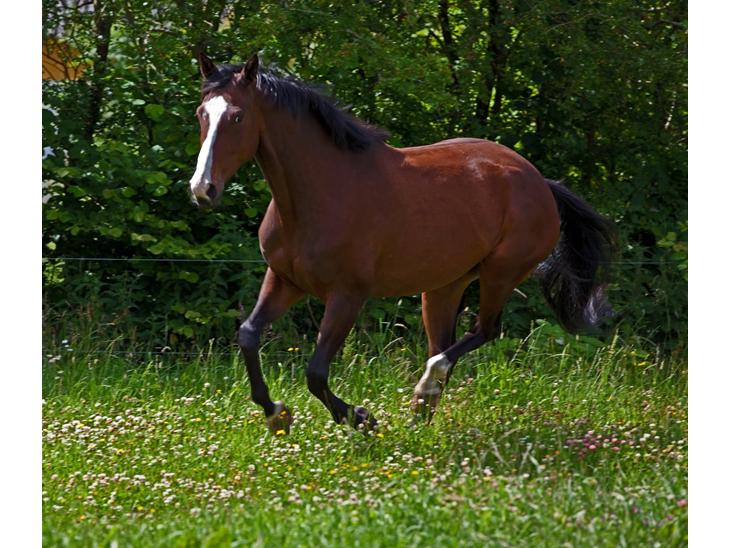 Jeg har desværre ikke nogen ridebilleder overhovedet. Nok mest da hun ikke har været redet mere end ca. 15-20 gange. Hun har døjet med sine hove og snæver benstilling på bagbenene, så hun har ikke gået helt korrekt i længere tid. Jeg blev rådet til at tage til HC Sørensen med hende, især da vi troede, at hun måske havde spat, mus eller lign. og vi ville gerne have afgjort, om hun overhovedet kunne blive ridehest. Det var godt, at vi tog derop, da han overhovedet ikke kunne finde noget i hendes ben. Hun har i stedet fået specialbeslag på og skal altid have "pakket" benene helt ind ved bevægelse, så hun ikke går og passer så meget på. Det er vist det, som har givet den mærkelige gang, som ikke er halt, bare mærkelig. Og så skal hun bare rides. Så det er jeg lige gået i gang med nu og hun går også fint nu. Det håber jeg meget at hun bliver ved med, for hun er bare blevet rigtig fin. Hun er dog lidt en hyæne med egne meninger fx i stalden og læsning mm, men hun vil rigtig gerne lave noget. Hun er også ved at blive stor, ca. 165 cm. Jeg er stadig RIGTIG glad for hende og jeg har lært/lærer meget af hende med de udfordringer hun nu giver mig fordi hun er en fuldblodsHOPPE og jeg er godt nok vant til HOPPER, men de er mest oldenborgere og der ER altså forskel!:) Efter dyrlægens gode besked er jeg helt sikkert igen begyndt at drømme om, at hun kan blive min militaryhest:) Når der er en fotograf i nærheden, så skal jeg nok vise billeder. Det varer nok lidt inden vi kan bevæge os ud i stævneverdenen og det er jo oftest der, at fotograferne er:)