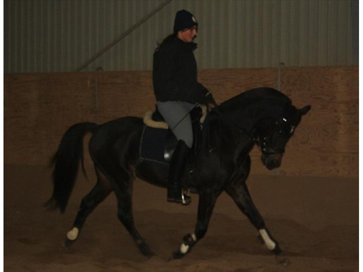 Få dage efter sætter jeg mig op på ham uden han er longceret, sætter ham i skridt, trav og galop og han gør det bare. Han stopper os lige med det samme..