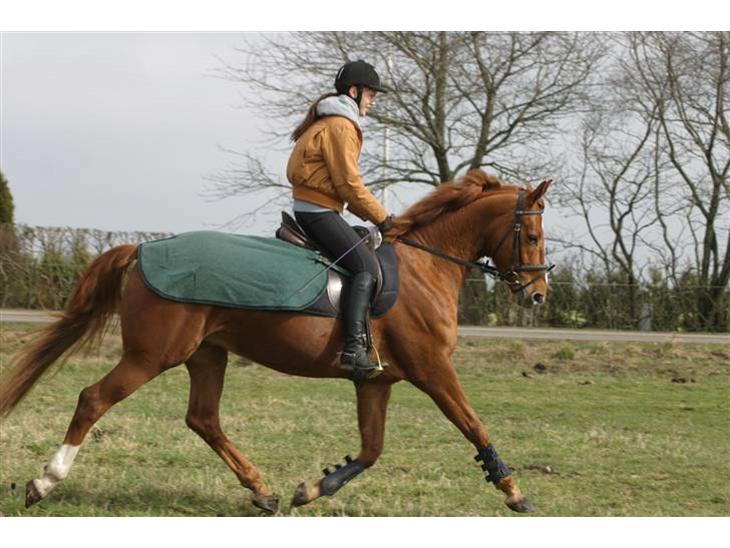 Thea er ikke min egen, men en jeg rider, da ejeren og hesten ikke rigtig kan sammen temperament mæssig. Jeg har redet hende ca. 1 mdr og får enetime på hende 1 gang om ugen. Ellers rider jeg hende hverdag og kan mærke store fremskridt fra første gang jeg sad på hende. Hun gik med føl sidste sommer og blev startet op igen i vinter, hvilket var noget af en udfordring, da hun overhovedet ikke vidste hvad hun skulle. Men det går meget bedre nu.