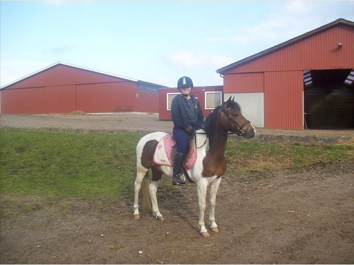 pretty er en super smuk pinto/ dsp pony med de smukkeste aftegn. hun har et pinto øje og et almindeligt øje. hun er hvid og brun plettet med sort/hvid man og hale. pretty er en hoppe med super tillid og overskud. når man giver hende kærlighed får man 3 dobbelt tilbage. hun har stor personlighed og super klog. hun er kærlig og har stor tålmodighed når de små skal ride på hende alt i alt lille snuske tøs. hun bliver redet jævnligt af en pige på 10 år der har halvpart i hende.fik pretty den 19/3-2010 vi er først nu kommet igang med rigtig træning og ridning, så hun skulle starte lidt forfra men hun er rigtig dygtig og tålmodig.