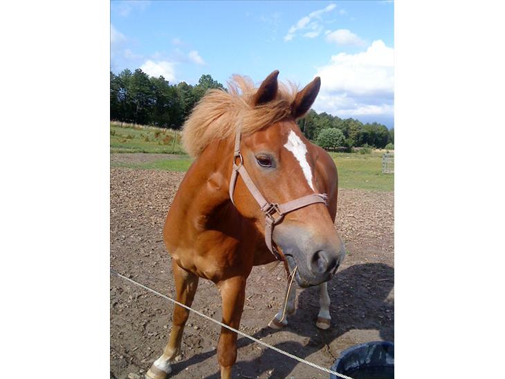 hun er brun og hun har en blis og hun har sokker. Hun er verdens beste hoppe man kan få. Hun har fået et fint føl. Hun er rigti god at ride på. Hun er dejlig at at nusse om. Hun er dejlig at strile. Hun er rigtig pæn. Hun kan godt være lidt fræk. Hun er sød ved folk. Man kan stole på hende. Hun er sjov på marken. Jeg elsker bare når hun kommer løbende hen over marken i fuld galop og stritter med halen det ser fantastisk flot ud!