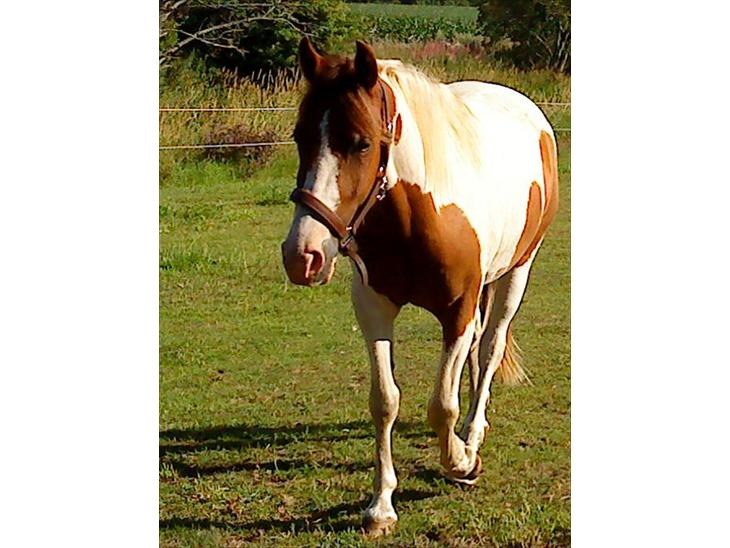 Sidst på sommeren, hvor hestene stadig gik ude om natten, kom jeg en fredag morgen ned på den bagerste mark. Og der manglede altså en pony, Sunshine altså. Jeg kaldte og til min store skræk så jeg min lille hvide pony vende sig rundt nede i åen. Alt hegn, dobbelt hegn altså og højt, stod som det skulle. Han var sprunget over hegnet og havnet i åen.