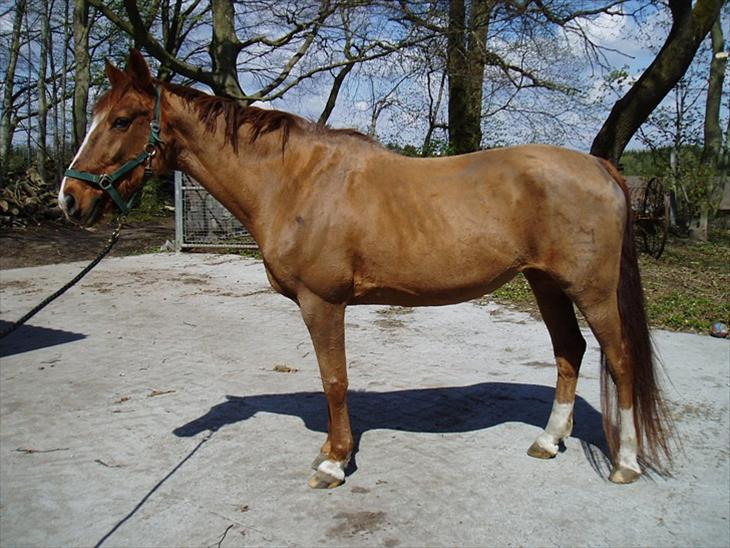 Hun var meget langhåret, og havde lidt lange hove med 1 sko på, da jeg fik hende hjem, men har nu haft smed til hende, og har klippet hende, så nu ser hun ikke så gammel ud mere..