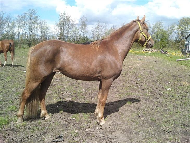 en dejlig rød hoppe , men er dejligt temp, hun er utrolig nysgerrig og skal undersøge alt, er mege´t madglad og ynder at tjekke ens lommer for godbider. meget snaksalig og en af de ponyer der altid hænger ud over lågen for at snakke, et rigtig nussehoved er vel det man bedst kalder den slags, da jeg lige har købt hende, kender jeg hende ikke så godt endnu, vi regner med at skulle ride hende en gang i næste uge så kommer der også ride billeder