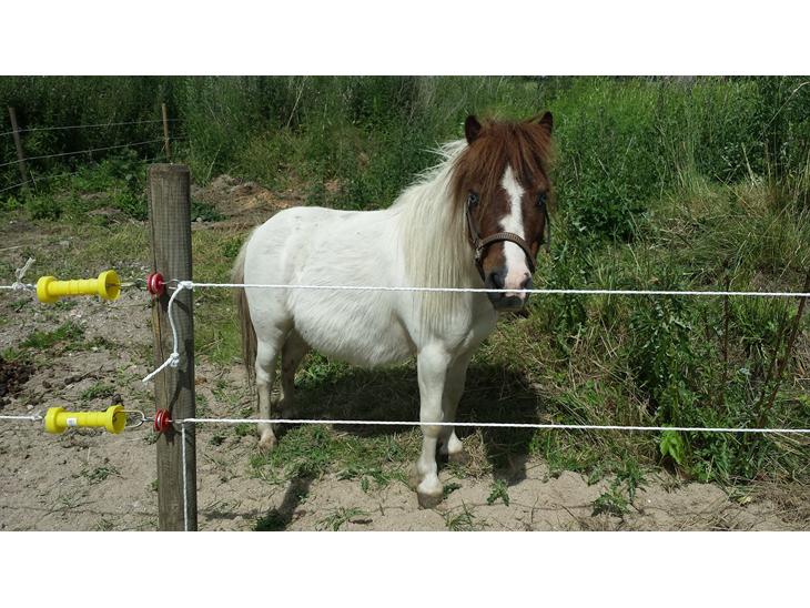 Men han er en vakker lille pony og hans blå øjne er slet ikke til at stå for.. Desværre smutter han ud af hegnet..:(