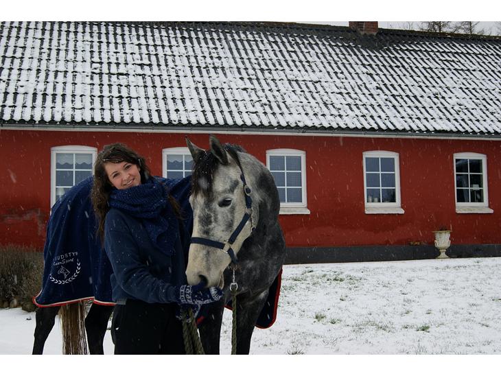 Hun er bare perfekt. for et par år siden lagde min søster og jeg sadle på hende for første gang. det sagde hun ikke noget til. så gik jeg rundet med hende, og longserede (staves) hende. hun var mega fin og gik godt. så efter min søster og jeg havde haft sadle på hende to gange satte hun sig op på hende. til at starte med ville hun ikke gå frem, men bare blive stående. så tog vi en pisk og drev hende frem med den, så begyndte hun at gå bedre og bedre gang for gang. jeg rider allerede gallop på hende, hun har aldrig stejlet, eller bukket med mig. min søster og jeg har helt selv tilredet hende. hun er bare den perfekte hest.