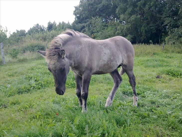 Juli 2010 Lóði er begyndt at smide føl pelsen og har en helt anden farve inden under. Den nye farve er pt. flot grå, men det er jo svært at se hvilken farve han bliver i sidste ende. hihi... Han er blevet meget stor og robust og er bare skøn.