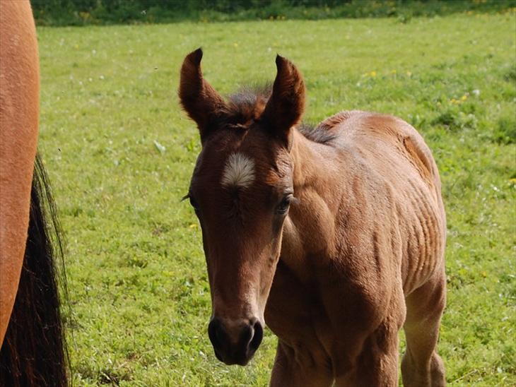 Endnu en gang var vi uheldig med vores føl, for navlestrengen var nemlig sprunget! Men min far fik stoppet blødningen og fik tilkaldt dyrlægen - og hun sagde han der heldigvis ikke ville ske noget med det.