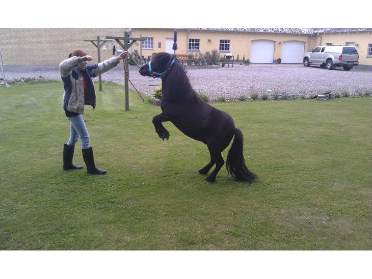 Hun er en lille shetlænderblanding :). vi købte hende fredag d.4 juni. Hun er den roligste jeg kender man kan gøre alt med hende på folden og i stalden. Det er mest min lillesøster der rider hende men jeg gør det også nogen gange. Hun er megaaa sød alle kan håndtere hende <3. Men hun er lidt besværlig med at få renset hove. :)