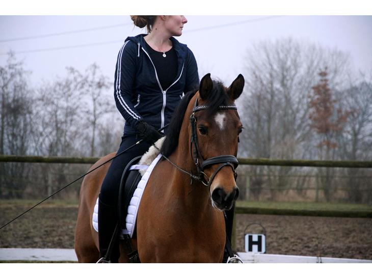 Vi rider udelukket dressur, men løstspringer en gang i mellem. Jeg elsker virkelig at ride hende. De sidste par måneder har hun virkelig udviklet sig en del. Hendes holdning og gang er blevet meget bedre.
