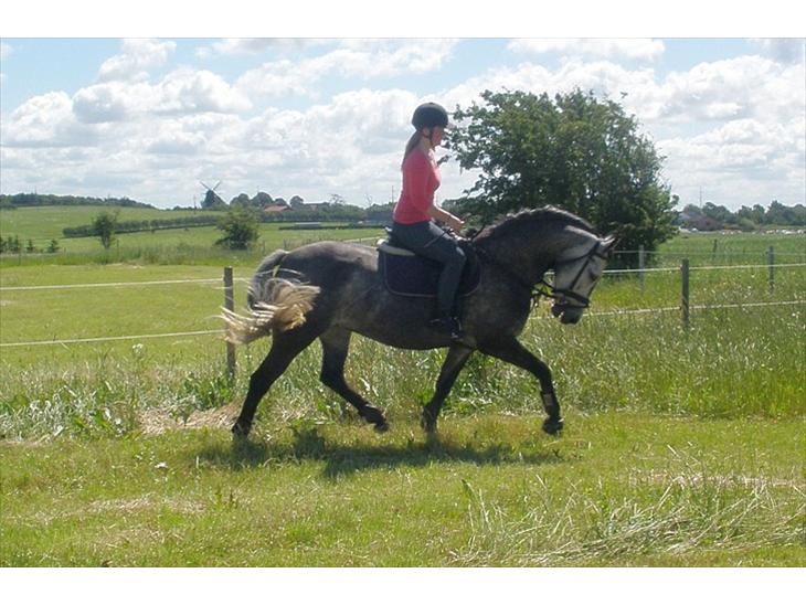 en rigtig skøn hest, der virkelig har vundet mit hjerte, jeg har redet hende i 2 måneder nu og syntes vi er kommet langt på den tid, da hun var meget strid i starten. Første gang jeg skulle op, smed hun mig af, derefter longerede vi hende i en periode, hvor hun fik muskler i ryg og hals. efter det var der ikke de store unoder i hende og nu går det rigtig godt, vi er også i gang med springtræningen.