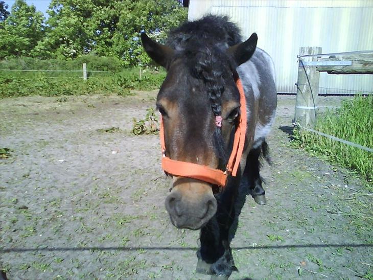 han er en lille charmetrold men samtidig en bandit han ved godt han er hingst men kan sagtens styres han går som selskabs hest hos de store heste og det er både hopper og vallaker han går med men de stroe skal side ham på plads ellers løber han efter dem så min friser hoppe kan ikk gå ved ham for hun underkaster sig alle så det ser sjovt ud stor friser der bliver jagtet af en lille hingst