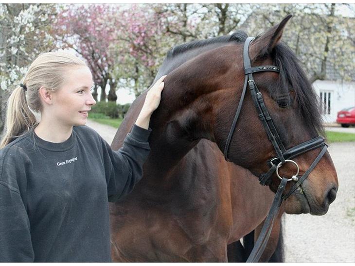 Jeg har haft ham i ridning fra maj til juli, hvor jeg besluttede mig for at købe ham. Han havde stået stille i 3 år hos avleren, indtil jeg fik ham i ridning. Han var ikke særlig sød de første par dage men nu er han som en lille hund. Det har været en lang proces men nu har jeg drømme hesten.