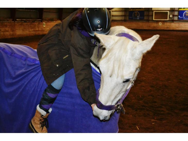 Hun stod pænt i traileren, og gik pænt ud igen! Jeg lukkede hende ind i hendes boks hvor Kimmi stod ved siden af. De to blev hurtigt gode venner. Men Matiné havde ufattelig dårlig mave hele tirsdagen :( Jeg striglede hende 3 gange den dag, bare for hyggens skyld :'D Og senere skridtede vi først stille og rolig rundt ude på udendørs ridebanen, og nøjs hvor var det spændende og farligt alle de der underlige ting! ;) Da vi havde skridtet rundt lidt der, gik vi ind i ridehuset. Vi skridtede rundt igen, og til sidst hoppede jeg ned. Vi øvede lidt HMS. Matiné gik allerede efter mig som en hund :') Dog stoppede hun ikke lige med det sammen første gang jeg stoppede, men jeg roste hende, også stoppede hun med det samme hver gang igen. Hun valgte mig frem for lækkert mad! :') Ellers hyggede vi bare den dag, og alle kom og roste min smukke hvide nye hest! <3 Og til sidst… min mor, bror, Stig og Tinna kom for resten også og så hende da vi skridtede rundt ;)