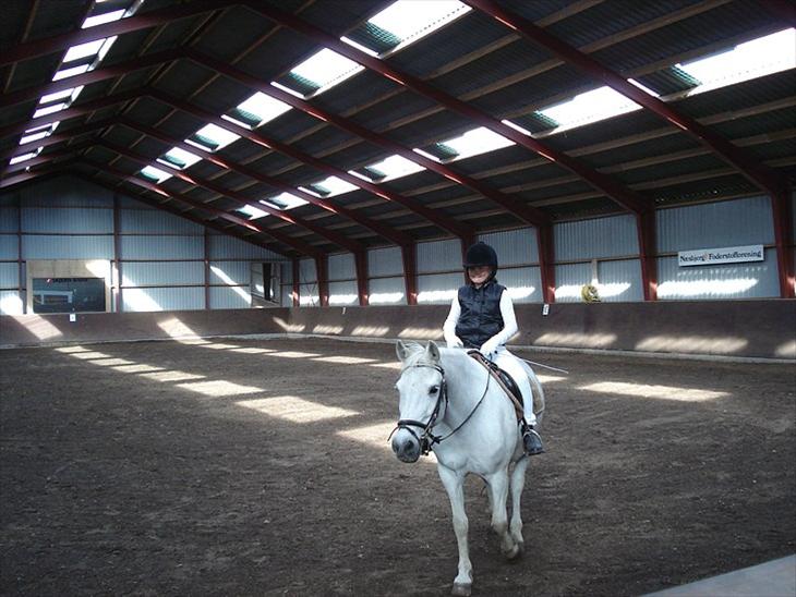 han er en sød og rolig vallak. Om sommeren er han hvid med et par enkelte små brune pletter, og om vinteren er han helt hvid. Han har en lille hvid pannelok, som jeg prøver at få lang.