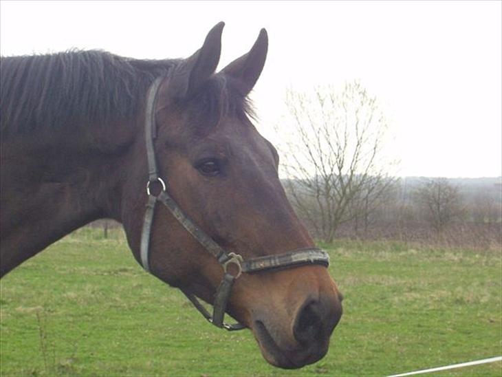Verdens dejligste hest. Han kom desværre til skade i januar 2005 og måtte aflives i marts 2005. Han gik desværre på en dårlig vinterfold med mange sten. En dag, havde han skåret knæet op. Efter 6 hårde uger, hvor dyrlægen kom næsten hver dag, blev han aflivet. Knæet var for medtaget. Det var sorgens dag, og bare ved tanken nu, er der tåre i øjnene.