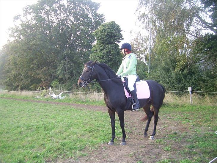Under ridning er det meget forskelligt, men med ørene fremad og nysgerigen i top.... bliver hurtigt opskræmt, og bliver Hoppe med stort H... men kan overtales til at forsætte, da hun jo gerne vil opleve, og have det sjovt!!