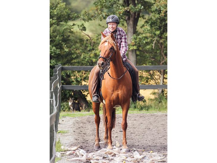 I skridt griber han fint ind under sig, traven er let og svævende og galoppen er yderst lovende.