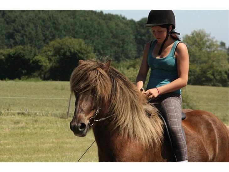 Han er lidt hingstet, Så når min mors Islænder hoppe er i brunst hopper han på hende! :)