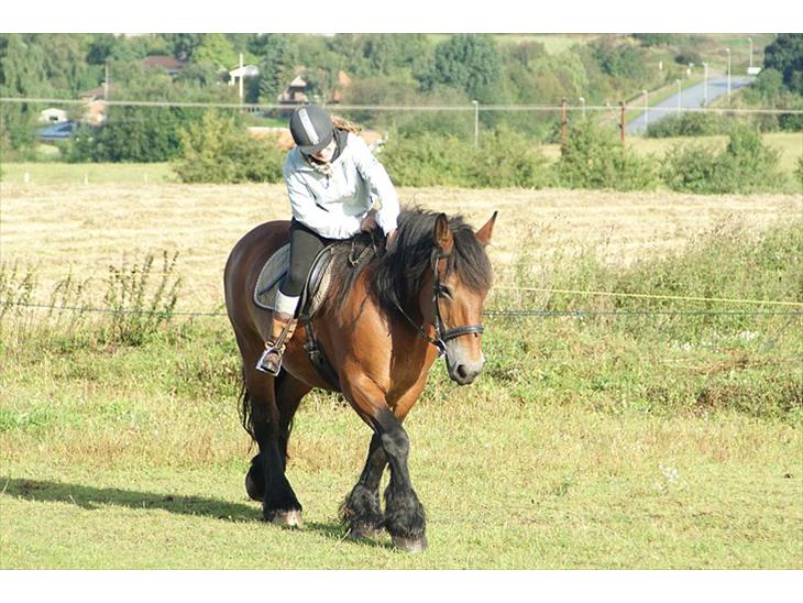 Middel gangarter trods hendes størrelse, men behagelig gangarter. Man er på ingen måde i tvivl om at man rider på en Belgier, hehe, skønt.. :)