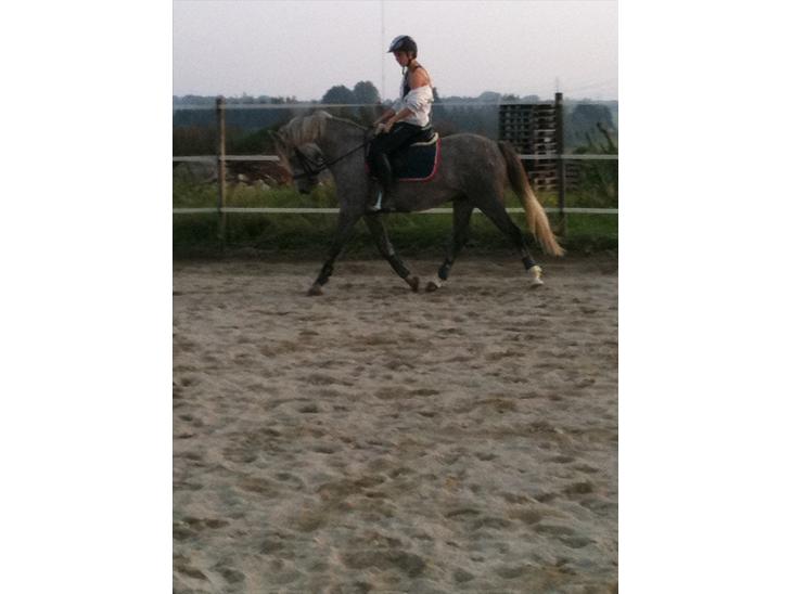 Han har en rigtig dejlig galop som vi også har arbejdet en del med, for 3 måneder siden kunne han ikke lave en ordentligt anspring, og han kunne ikke holde galoppen i mere end en runde. Men nu galopperer vi der ud af, og han er blevet meget mere afslappet, og lige i galoppen, han er også begyndt at gå mere op ad bakke.