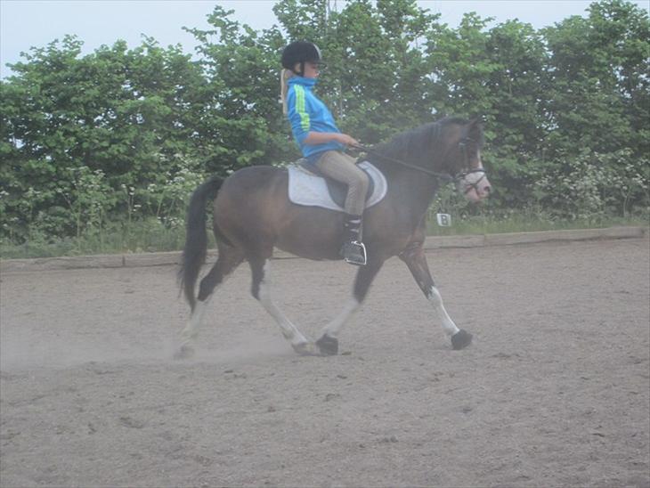 Øget trav - uøvet, men det skal der nok snart laves om på.. Hun kan sagtens m. pony sporer, men uden bliver det lidt svæært.