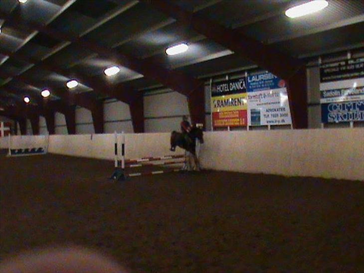 Det er godt nok min mor, der har købt ham, til min stor søstre, men da hun ikke mere, må ride kat 3 pony, og den anden som jeg lånte af hende (felixgårds Sascha) er låntt ud til min kusine, ja så fik jeg altså lov sidste år , ligea prøve, om jeg nu også kun ride og holde Kimbo, og det kan jeg altså, selv om mange mener at han er lidt vild, men tro mig. Kimbo er jordens dejligst, og kunne aldrig finde på at tage bidet, bukke eller andet, han går lidt underlig da han drejer hovedet meget ud af volten, men selv min lille kusine på 6 år, kan varme ham op uden problemer, og min anden kusine på 8 år har skam også startet stævner på ham. Og det har ikke været noget problem, dog er der mange der har været efter min mor, og sagt at jeg skulle få en anden pony, da de mente at jeg og Kimbo var til fare for mig selv og andre, men som min mor siger, man vinder ikke på at jorde af sted, for så piller man nemt en bom, han skal støttes, slipper jeg tøjler for meget, ja så stopper han..