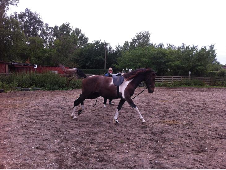 Vi har lige redet ham til, og han har været rigtig sød og let at arbejde med, lige nu skal han lære at gå frem, men jo bedre en at vi ikke kan stoppe ham