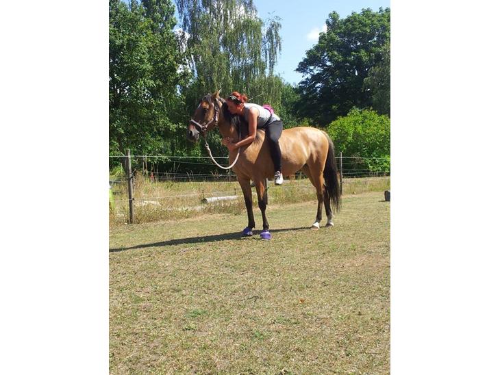 Unica 2 år og 8 måneder. - vi er så småt begyndt at træne en smule vægttræning.. På billedet kan du se hende første gang med rytter på.. Så dygtig er hun :-)