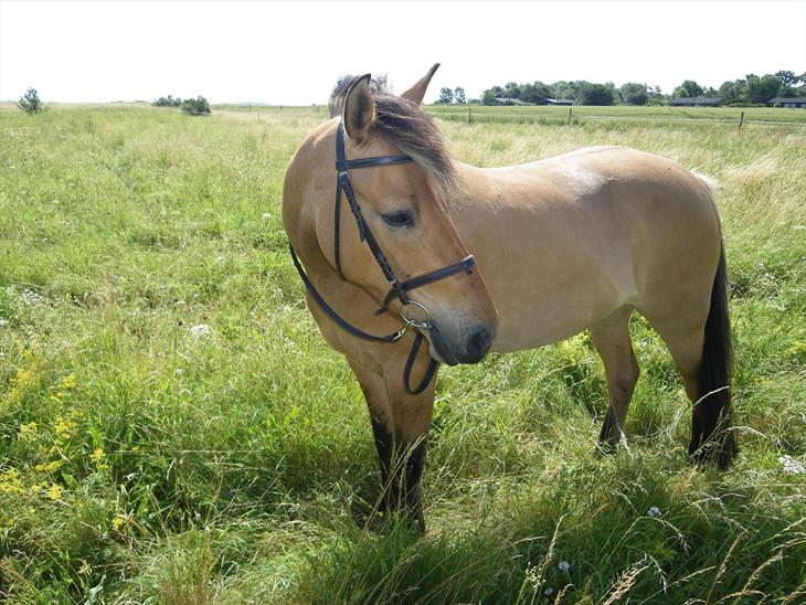 Han har ikke stamtavle men han er halv fjordhest og halv pinto, dejlig blanding!