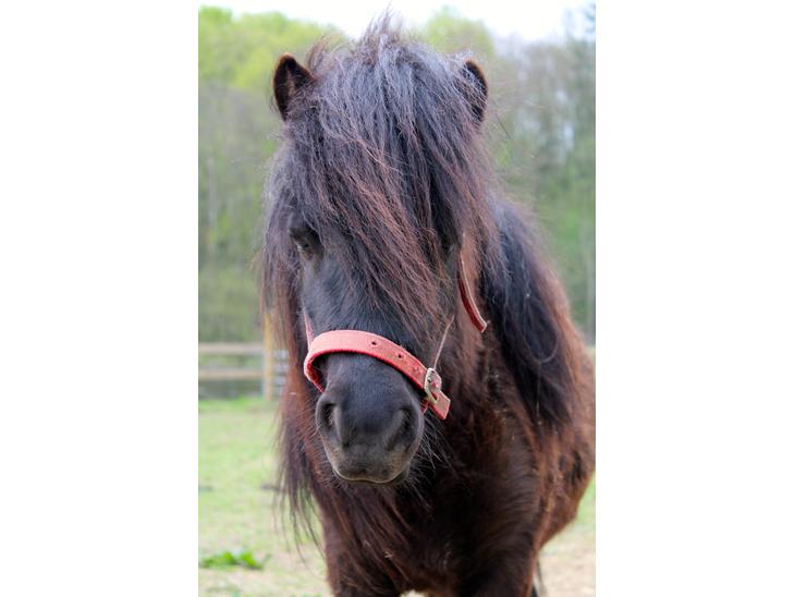 Han er et lille shetlænder føl som er sort. dog har han hvide hår på mulen og har en mørke grå/sort farve på maven. Han er vild sød at snakke med osv.
