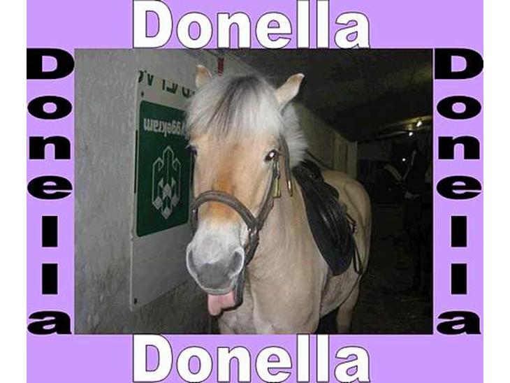 Donella var min elskede part pony, men en dag da jeg skulle ud for at ride hende kunne jeg ikke fide hende. jeg kiggede selføglelig i alle staldene, men kunne ikke fiden hende. jeg gik op til min ridelære for at spørge om hun vidste, hvor Donella var. hun sagde hun var blevet solgt bare fra den ene dag til den anden. Jeg blev rigtig kede af det og græd meget. for jeg vidste ikke, hvor hun var/er.