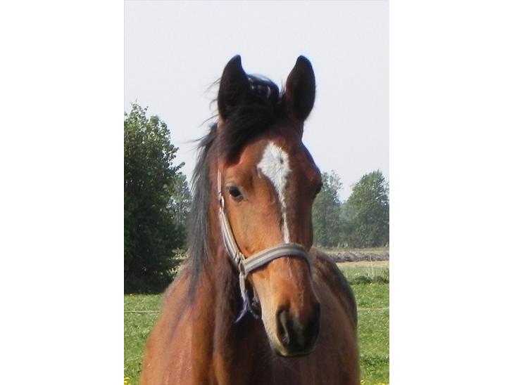 Han er brun med en stjerne blis i hovedet som går ned i en spids,