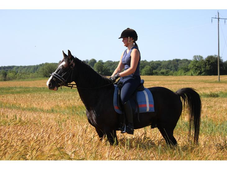 -Den dag vi fik prøvet en form for cowboy-ridning blandet med mountedgames. Vi havde redet noget dressur på banen hvorefter vi red ned ad en stubmark, og da vi næsten var nået tilbage igen, ser jeg så Molly(min gamle hund- En beagle) komme løbende mod os. Jeg kalder på hende men hun ignorerer mig totalt, og spurter ned ad marken. Jeg får hurtigt vendt om rundt og sat i galop og så red vi ellers bare der ud af efter Molly. Vi nærmede os hende, men så stopper hun op og snuser til et hul i jorden. Dér fik vi også lige øvet en vending, og kom hurtigt ned i skridt da vi kom tæt på Molly. Jeg gled stille ned fra dig, mens jeg snakkede blidt til Molly som var totalt optaget af noget hun kunne lugte. Jeg lod dig stå mens jeg gik tættere og tættere på Molly. Da jeg næsten rørte hende, vendte hun sig om mod mig, og spurtede så videre ned ad marken. Jeg løb hen til dig, svang mig op og så gav vi den ellers alt hvad vi kunne og jeg stod i let sæde, du pustede helt vildt, med udspilede næsebor, og det føltes bare så fantastisk. Ubeskriveligt. Det kørte bare. Vi galoperede efter Molly hele vejen ned til enden af marken, hvor hun stille løb over en bred vej, og videre ned ad en lille grusvej på den anden side. Vi fulgte med, men da der stod en blandningsmaksine ved det først hus, stoppede du op og kiggede på den. Jeg fik dig stille forbi den, og vi fik hurtigt fuld fart på igen, hvor vi så red hen til det næste hus, og jeg igen stoppede dig, da jeg ikke længere kunne se Molly. Vejen var for lang til at hun kunne være nået til tredje hus, så jeg ringede min far op og fortalte hvor jeg var og at jeg ikke kunne se hende længere. Han sagde at jeg skulle ride hjem og så måtte vi køre derned i bil og lede videre. Jeg proppede min mobil i lommen og red ind på marken der lå på højre side af os. Jeg havde ikke tænkt mig at give op. Hver gang jeg havde været ude og lede efter Molly, havde jeg altid fundet hende igen. Vi red lidt rundt og jeg fik pludselig øje på hende, i et hjørne af marken, så jeg satte i galop og red derhen. Vi forsøgte at trænge hende op i en krog men til sidst spurtede hun tværs hen over marken og vi red slevfølgelig efter hende i samme fart. Hun stoppede op lige før tredje hus, for at snuse til et eller andet, så jeg stoppede dig 2 meter fra Molly, og lod mig glide ned. Jeg sneg mig stille ind på hende, mens du stod forpustet og ventede. stod og ventede. Jeg fik fat i Mollys halsbånd, og ringede til min far for at fortælle, at han skulle komme ind på en mark på grusvejen og hente hende. Han kom, og vi skridtede hjem. Hold da op du var svedig da vi kom hjem!