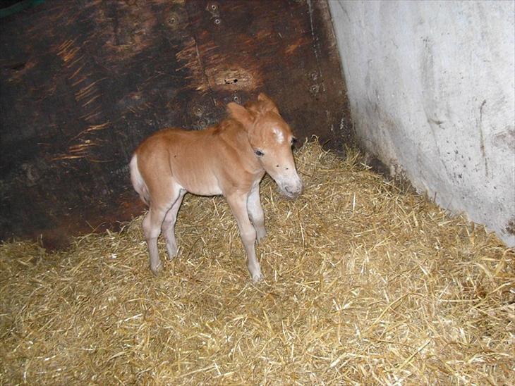 Hans mor var ikke helt klar over hvad der skete så en 28 årig gammel pony redede livet for ham ved at bide hammet af ham og slikke hans mule ren inden der kom et menneske og trak føllet ud, den gamle pony rendte af med føllet det fik moderen til at forstå hvad der lige var sket og i dag passer hun ham rigtig godt..