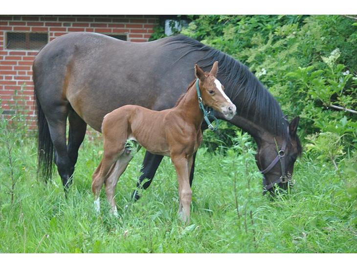 Han er en dejlig rød hingst, med tre hvide sokker og hvid blis..