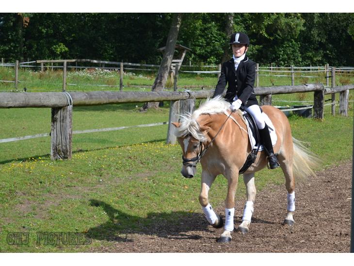 Wictoria er min Haflinger, som jeg deler med min mor. Hun er en rigtig sød pony, og meget rolig! Jeg kan selv ride i skoven, og har redet meget alene ude. I træning øver vi LB3 øvelser, da jeg skal til Haflinger DM den. 20 August, hvor jeg skal starte min LB3. Hun er en meget venlig, og sød pony, som vrinsker hver gang man kommer i stalden.
