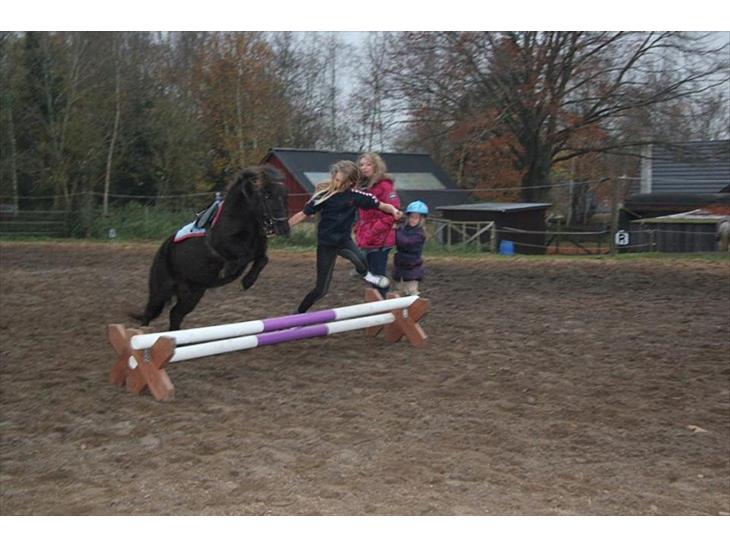 hun er en pony der saktens kunne følge med på tur med de store heste og måske også løbe fra dem hun er også nem at stoppe bare lige ruske lidt og sige små lyde så stor hun stille hun er rigtig sød til det der ridning med små børn.