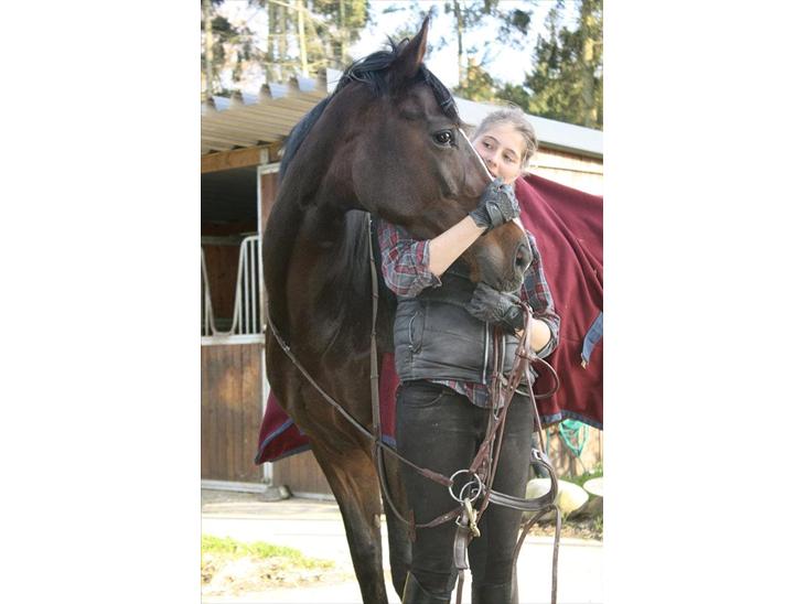 Hun er et nussehoved i boksen men så staldgangen flyver hun rundt og vil ikke stå stille. Men sådan er det jo..