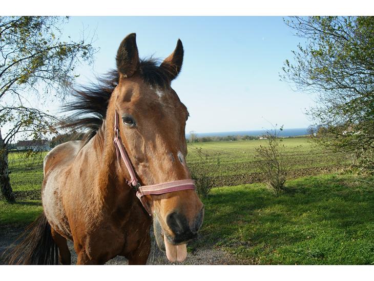 Sød hest virker meget ung af sind, en dejlig størrelse og fantastisk størrelse. Elsker mad dog meget tynd da jeg fik ham og har ikke taget på som ønsket. Elsker bevæg sig frisk og livsglad, går sammen med en hoppe som han elsker så meget at han ikke helt vil væk fra hende. Elsker blive nusset og har det meste af tiden ørne helt fremme. Vrinsker når man kommer ind i stalden bliver lidt sur hvis man ikke hilser på ham først... Knægten bliver kaldt Pony og er ved at blive genoptrænet og fedet op derfor ikke rigtig nogen billeder hvor jeg rider ham :) Men lige så snart han er begynd at være trænet op igen og har lidt mere sul på kroppen kommer der billeder af hvor vi rider... Vi har lige begyndt løsspring for sjov for at se hvordan han tager det og han elsker det udentvivl lige nu er vi op på 40 cm men skulde gerne blive mere med tiden :)
