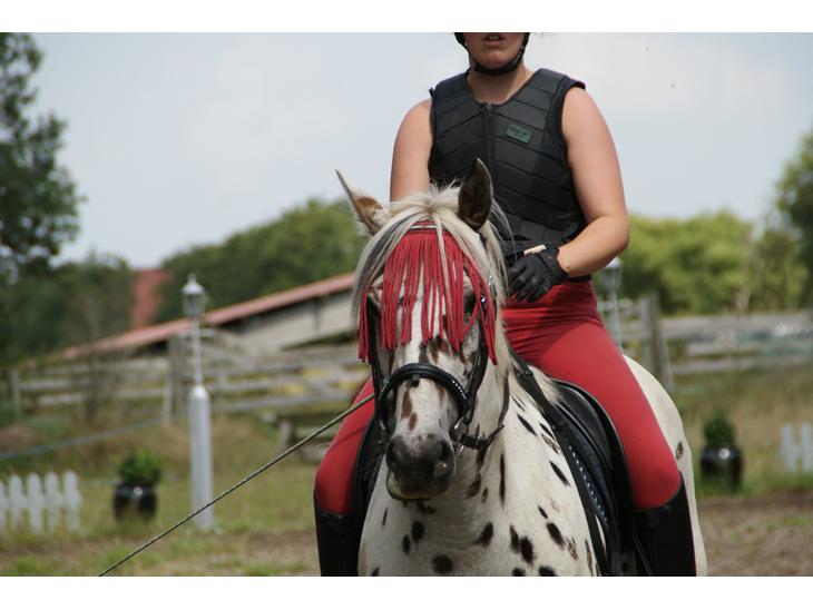 Capone er min "nye" pony som jeg snart har haft i en måned. Han har et rigtig roligt sind. I den måned jeg har haft ham er han mest redet i skoven eller longeret over bomme, da han er ved at bygge rygmuskler. Vi arbejder også lidt på balancen, men det kommer:-) Da Capone kom hjem var der en masse ting vi lige skulle have styr på før jeg kunne komme lidt igang med ham, han skulle bl.a have ordnet tænder. Der var også lige et gjord sår vi lige skulle havde styr på. Gitte Søby har været og rette ham nogle gange. Han er lidt tynd, så han skal tage lidt på. Han er også behandlet mod orm. Smeden har været her, så nu har vi vist været hele vejen rundt. Så nu skal han bare tage lidt mere på, så jeg kan komme rigtig igang med ham.