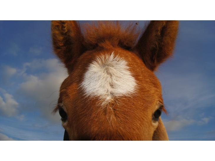 Hun er en super dejligog smuk hoppe på 9 måneder, hun er rød med en stjerne og en lille snip. Hun er lidt for tyk fordi hun har gået på sommer gras med sin mor hele sommeren.