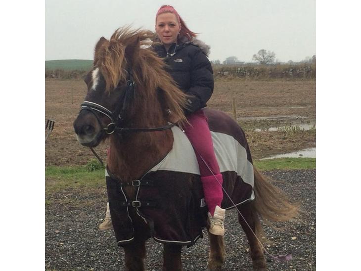 Dagen efter gik jeg ned for at hente ham, han stod det samme sted som jeg satte ham om aften, lige tæt på leddet og foran vandet. Jeg tog ham med op til gårdenpladsen, men han vil ikke rigtig gå, jeg blev nød til at tvinge ham. Da vi langt om længe kom op. satte jeg ham ind i en anden fold, så jeg kunne gå og holde øje med ham, men det blev kun værre og værre, til sidst ringede jeg til dyrlægen, han kom så ud, og så ham. Det viste sig så at det var forfangenhed han var løbet ind i. Han gav ham noget smertestillende og noget medicin, men han var ikke sikker på at det hjalp ham, fordi det allerede havde taget meget på ham. Vi satte ham ind i en boks, med et stort tykt lag halm, han lå for det meste bare ned, og jeg holdte mig meget ude ved ham. Han måtte stå i boksen i 14dage og til sidst kunne jeg begynde og trække små ture med ham, og til sidst efter en måned, måtte jeg ride på ham igen, hvor det bare var igang med træningen. Nu rider jeg på ham hverdag, fordi det kan holde hans forfangehed ved lige. Jeg er bare så glad for at han overlevede! og han kæmpede sig igennem det. det var virkelig hårdt og se ham sådan!.
