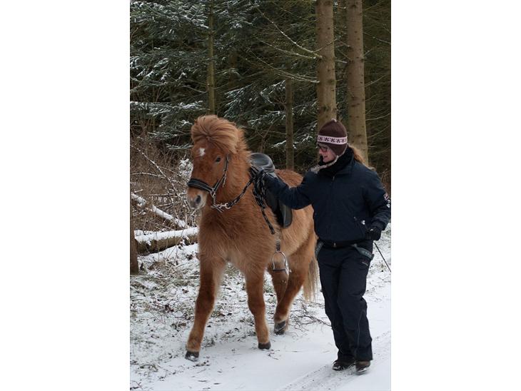Har oppe og sidde og skridte rundt på is pigen, med sadel på, hun var så fin, snusede til sadlen og til mine ben, det var noget underligt syntes hun :)