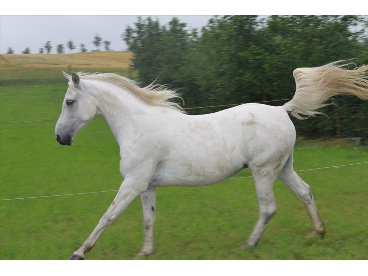 hun er uddanet i klasisk ridning dvs at man kan ride hende kun med en snor om halsen og bare styre hende med hvor dan man sidder hun er skøn i horsemanship hun kan alle øvelser op til la . hun har sprunget 80cm dog ikke med mig som rytteren ;) .men man ksal passe på i hjørnerne der kan hun godt lide at skyde skulder. kan også godt være lidt besværlig da hun jo som sagt er arber så man kan først komme til at få hende ned med hovdet når man har været i gallop men ellers er hun super dejlig og vi har det sjovt når vi hygger