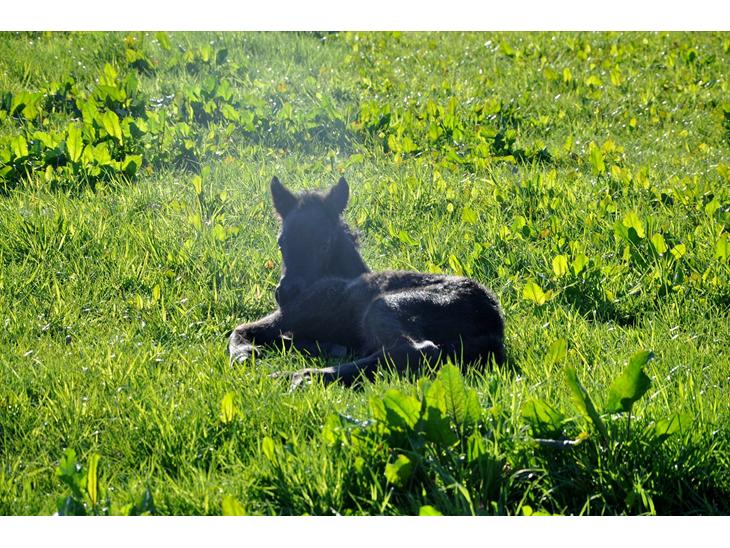 De første par uger var hun helt sort, men efterhånden er hun blevet lidt mere ovre i den mørke chokoladebrune farve med et orange skær i manen.