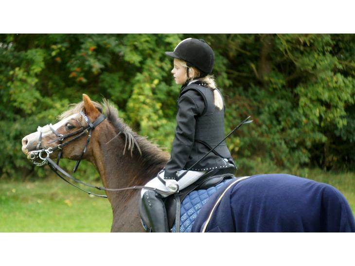 Vi red hende en del og fik hende i form, begyndte at springe. Stille og roligt nåede vi 80 cm. med hende. Her i løbet af sommeren har vi fået hende yderligere styrket, så nu er hun ved at være klar til de lidt sværere opgaver.