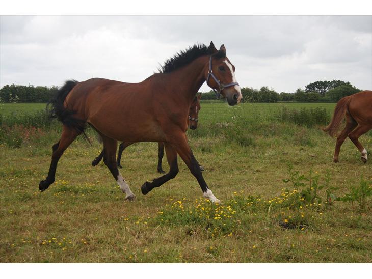 hun er superlækker når hun bliver samlet og på tur er hun også rigtig fin, hun kan rides alene og med andre, hun går bare... jeg har ikke prøvet at springe på hende, men hun skulle være god...